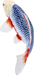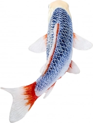 Ez a gyönyörűen kidolgozott KOI pontyfigura az Asagi színváltozatban hűen idézi az eredetit – a pikkelyek szerkezetétől a finom színátmenetekig. A kézi festésnek köszönhetően minden részlet kiemelkedik, a figura rendkívül autentikus hatást kelt.