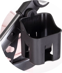 A babakocsi kiegészítőkkel van felszerelve, amelyek tartalmaznak kiegészítő táskát, palacktartót és lábtartót.
