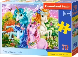Kerülj varázslatos utazásra a Egyszarvú puzzle-val, amely 70 darabot tartalmaz. Tökéletes gyerekek és felnőttek számára, akik szeretik a kihívásokat és szeretnének minőségi időt tölteni a kirakással. Ez a puzzle gyönyörű képet nyújt, tele részletekkel és színekkel.