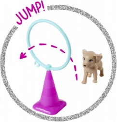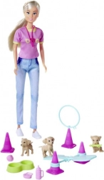 A készlet tartalmazza Steffi babát, rózsaszín topban és farmerben, felkészülve a kutyák kiképzésére. Kreatív játék minden korosztály számára.