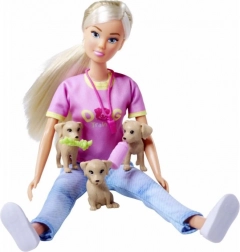 Fedezze fel a képzeletbeli játék világát a Steffi babával, mint kutyatréner. Ez a készlet nemcsak stílusosan öltözött babát kínál, hanem számos kiegészítőt is, amelyek három kis kiskutyát és kiképző segédeszközöket, például bójákat és edényeket tartalmaznak. A baba hossza 29 cm.
