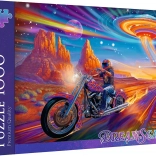 Lépj be az álmok világába a DreamScapes sorozattal. Ezek a minőségi 1000 darabos puzzle-ök a Őrült száguldás motívummal egy motorost ábrázolnak sivatagi országúton, a horizont felett egy űrhajóval. Összerakva 683 × 480 mm méretű képet kapsz – tökéletes pihenéshez és kiállításhoz is.