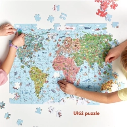 Állítsd össze a világ részletes térképét, és fedezd fel, milyen állatok élnek az óceánokban és az egyes kontinenseken, milyen növények, ételek és nevezetességek jellemzőek rájuk, és mely modern és történelmi építmények érdemelnek felfedezést. Az illusztráció tele van kérdésekre ösztönző elemekkel és új ismeretekkel – ideális a kíváncsi gyerekeknek és a közös családi pillanatokhoz.