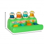 A szórakozás nemcsak az ütögetésről szól - a gyermeknek először meg kell fordítania a mozgatható gombot, így a játék több nehézségi szintet kínál és órákig tartó lebilincselő szórakozást biztosít.