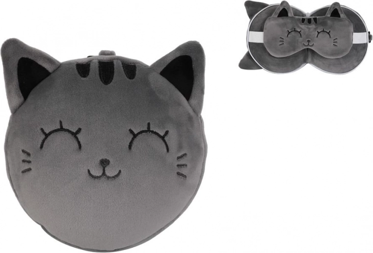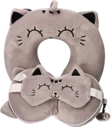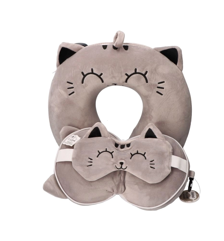 Élvezze a nyugodt alvást utazás közben a puha utazópárnának és a bájos, szürke macskás maszknak köszönhetően. Ergonomikus kialakítása tehermentesíti a nyaki gerincet, a szemmaszk pedig hatékonyan blokkolja a fényt a zavartalan pihenésért.