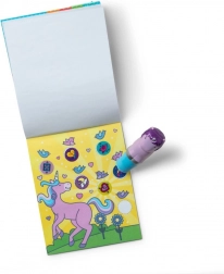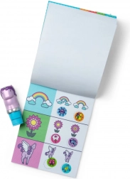 A Sticker WOW! egyszerű és tiszta bélyegzést kínál rendetlenség nélkül. Az ergonomikus bélyegző ideális a kisgyermek kezekhez, és színes füzet egészíti ki tele unikornisokkal, csillagokkal és vidám motívumokkal. Minden lenyomat ösztönzi a kreativitást és segíti a koncentrációt.