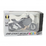 Ez a precízen kidolgozott modell robusztus fém testet ötvöz műanyag részletekkel, amelyek kiemelik a valósághű vonalakat, kipufogót, féktárcsákat és a texturált ülést. Az integrált fény és hang (3× AG13, a csomag része) fokozza a játékélményt és a vitrinben való megjelenítést is.