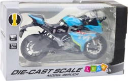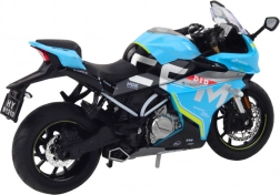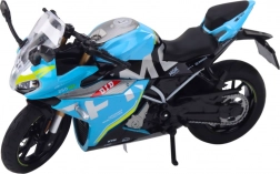 Ez a kék sportmotor 1:12 méretarányban kiemelkedik a precíz kidolgozásával és a masszív fém szerkezetével. A valósághű arányok, a részletgazdag megjelenés és a minőségi festés remek darabbá teszik vitrínbe és vonzó játékká egyaránt. Az integrált fény- és hangi effektek tovább fokozzák a valódi vezetés érzetét.