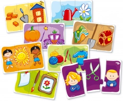 - 8 tematikus kép három darabbal, könnyű első kirakózáshoz