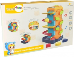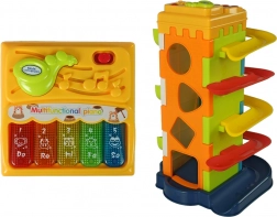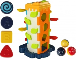 Ez az okos játék aktív játékra és készségfejlesztésre ösztönzi a gyerekeket. Dobják be a labdákat a felső nyílásba, és figyeljék útjukat lefelé a szinteken. Az egyik oldallapon válogató nyílások találhatók különböző formákhoz, a másikon pedig egy mini zongora az első zenei kísérletekhez. Mindez biztonságos, tanúsított műanyagból készült, sima, lekerekített élekkel.