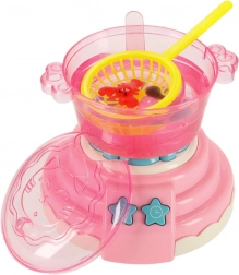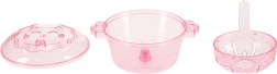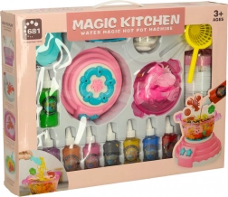 A csomag tartalma: A készlet 12 üveg különböző színű gélt, 24 formát, kalcium-laktáttal töltött poharat, 4 tányért, 4 tálcát, 2 szitát, 2 csipeszt, 1 fedéllel ellátott csészét interaktív játékokhoz és egyebeket tartalmaz.