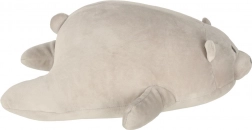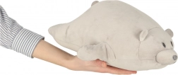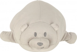 Puha mackó barátságos megjelenéssel, amely minden gyermeket elvarázsol, és kényelmes párnaként is szolgál.