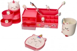 Finom rózsaszín kivitel kedves arccal és egyszarvús részletekkel, amelyek stílust és játékosságot adnak az asztalodnak.