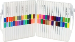Az egész készlet egy praktikus, fogantyús rendezőben kapott helyet, amely megkönnyíti a hordozást és a tollak biztonságos tárolását. A 27 x 26 x 3,5 cm méretű kompakt rendező otthon, iskolában és utazás közben is ideális. Az átlátszó csomagolásnak köszönhetően gyorsan ellenőrizhető a tartalom, így könnyen megtalálható a szükséges szín. A rendező masszív kialakítása megvédi a tollakat a sérülésektől, és megkönnyíti a rend fenntartását a kreatív eszközök között.