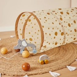 A karamell árnyalatok és pöttyös minta otthonos és modern megjelenést kölcsönöznek az alagútnak.