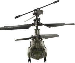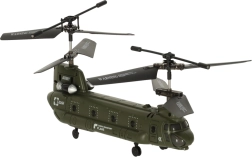 A katonai szállítóhelikopter által inspirált modell stabil repülést, jó irányíthatóságot és látványos, zöld‑fekete megjelenést kínál. Az ergonomikus karokkal ellátott vezérlő a fiatalabb pilóták kezébe is jól illeszkedik, így gyorsan elsajátíthatók az irányítás alapjai. A masszív műanyag ellenáll a kisebb eséseknek, a hosszú rotorlapátok pedig nyugodtabb repülést segítenek.