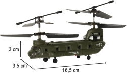A kétrotoros sziluett és a katonai színvilág szállítóhelikoptert idéz. Remek választás a haditechnika rajongóinak és a kezdő pilótáknak.