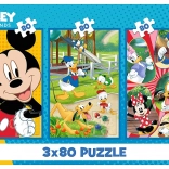 Ez a puzzle szett több örömet és lehetőséget nyújt a gyerekeknek – három különböző kép a Disney világ kedvelt MICKEY MOUSE szereplőivel. A kisebb végső méreteknek és a kirakónként 80 darabnak köszönhetően a termék ideális a fiatalabb építők számára, akik így gyakorolhatják a türelmet, a koncentrációt és a finommotorikát.