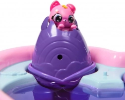 Merítsd a tojásokat a szív alakú medencébe, vedd le a szárnyacskákat, és lassan önts vizet – amint a szív mindkét fele színt vált, a Hatchimals figuráid kikelnek. Több víz hozzáadásával a színek lilává olvadnak össze, látványos neon megjelenést adva. A varázslatos, vízben történő kikelés színváltással minden játékot egyedülálló élménnyé varázsol.