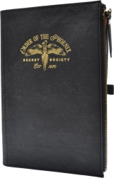 Fekete borító arany „Order of the Phoenix Secret Society” emblémával és visszafogott Harry Potter márkajelzéssel – különlegesen stílusos megjelenés.