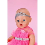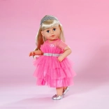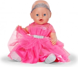 Változtasd BABY born babádat igazi hercegnővé! A szett több rétegű rózsaszín tüllből készült ruhácskát, hozzáillő ezüst színű cipőcskéket és fejdíszt/tiarát tartalmaz a tökéletes megjelenéshez. Ideális a fantáziadús játékhoz, a öltöztetéshez és az ünnepi alkalmakhoz. Alkalmas BABY born 43 cm-es babákhoz és 3 éves kortól ajánlott.