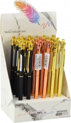 Elegáns fém toll korona formájú díszítéssel kivételes kiegészítő irodába, iskolába vagy mindennapi használatra. Luxus dizájn ötvözi a klasszikust és a modernséget, figyelemfelkeltő megjelenésével.