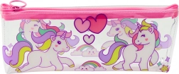 A tolltartó színes egyszarvúakkal, szivárvánnyal és szívekkel minden iskolapadot feldob.