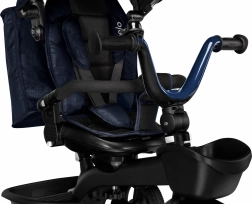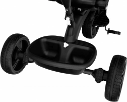 A monocoque magnéziumváz lényegesen könnyebb, mint az acél vagy az alumínium, mégis erős, és természetesen csillapítja a rezgéseket. A biztonságot fokozza a 3 pontos öv, a puha karfa, a csúszásgátló kormány, a kerekek rögzítésének lehetősége álláskor, valamint az EN 71 szabványnak való megfelelés. A praktikumot palacktartó, két tágas kosár és cipzáras táska egészíti ki az apróságoknak.