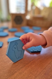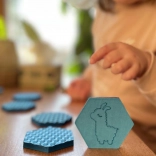 - 10 pár állatkát tartalmaz hab hatszög alakú lapokon.