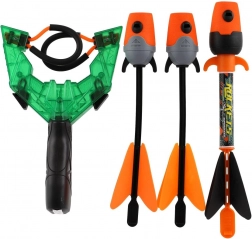 Szórakoztató lövészeti készlet 8 éves kortól: parittya három sípoló nyíllal távoli, magasba irányuló és céltáblás játékhoz. Fejleszti a kézügyességet és a pontosságot, játszható egyedül vagy barátokkal, és biztonságos, akciódús szórakozást nyújt otthon és a szabadban is.