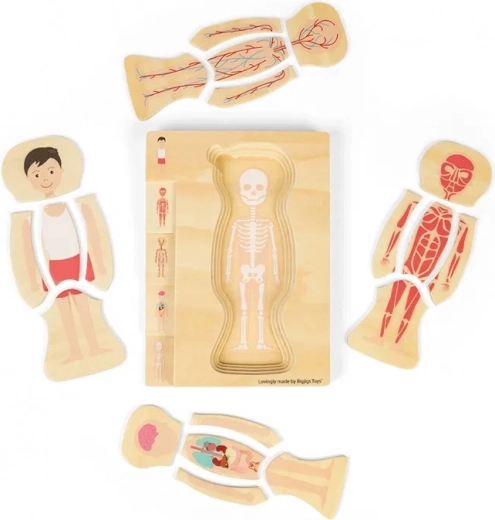 Ismerd meg az emberi testet játékos formában ezzel a minőségi fa puzzléval. A réteges elemeknek köszönhetően a gyerekek megértik a test felépítését a csontváztól a szervekig, miközben fejlődik a finommotorikájuk és a logikus gondolkodásuk. FSC tanúsított fából készült, nem mérgező festékekkel, és megfelel az európai biztonsági szabványoknak.