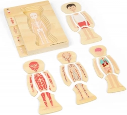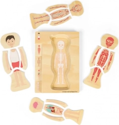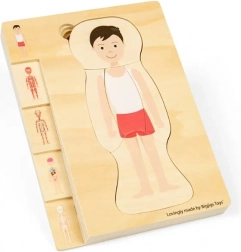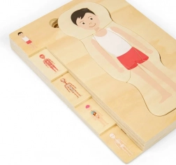 Ez az oktató puzzle több rétegben mutatja be egy fiú anatómiáját – a csontváztól az izmokon át a szervekig. A gyerekek interaktív módon sajátítják el az emberi anatómia alapjait, miközben gyakorolják a türelmet és a térbeli képzelőerőt.