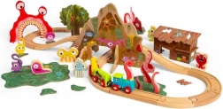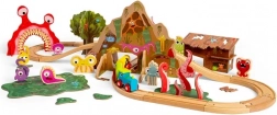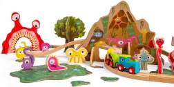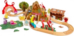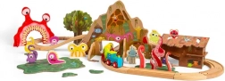 - Mozdony, 2 vagon, sínek, híd, alagút, szörnyfigurák, állatokkal teli fa, mocsár, viskó és kiegészítők