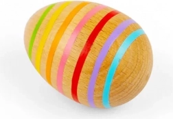 Ez a csíkos, természetes fából készült zenélő tojás sima, a kis kezekhez ideális formájú. Rázáskor kellemes, lágy csörgő hangot ad, amely támogatja a ritmusérzék kialakulását és fejleszti a hallási készségeket.