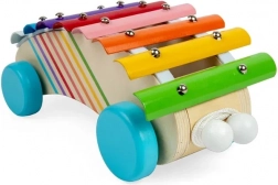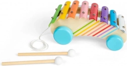 A kerekeknek és a zsinórnak köszönhetően a gyerekek szívesen húzzák maguk után a xilofont, ezáltal fejlesztik a koordinációt, az egyensúlyt és a nagymotoros készségeket.