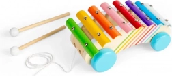 Ez a vidám, húzható xilofon támogatja a ritmus és a hangok természetes felfedezését. A nyolc színes fém billentyűvel a gyerekek könnyedén csalnak elő vidám hangokat, miközben a zsinóron való húzás fejleszti a finom- és nagymotorikát. Ideális első lépés a zene világába – szórakoztató, biztonságos és tartós.