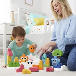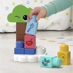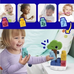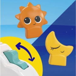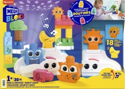 Az interaktív Mega Bloks készlet éjszakai fénnyel segít a gyerekeknek egészséges reggeli és esti rutin kialakításában. 4 figurát és építhető környezetet tartalmaz. Az éjszakai fényre hold- vagy napblokk helyezhető, amellyel altatódalokat, lágy hangokat, fényhatásokat és csillagprojektort indíthatunk estére, illetve vidám dalokat, környezeti hangokat és napfény mintákat reggelre. Ideális 1 éves kortól.