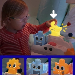 Az esti mód nyugtató altatódalakat, visszafogott fényhatásokat és csillagprojektort kínál a békés elalváshoz. A reggeli mód vidám dalokkal, természet hangjaival és friss fény mintákkal ragyogtatja be a napot. Az egyszerű vezérlésnek és a masszív kockáknak köszönhetően a készlet tökéletes a totyogóknak.