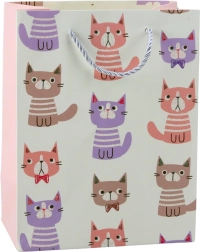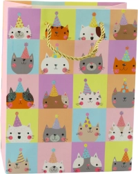 A 23 x 18 x 10,5 cm-es méreteknek köszönhetően a táska ideális különféle ajándékok csomagolásához - apróságoktól kezdve, a kozmetikumokon át, egészen a könyvekig és egyéb tartozékokig. Négy különböző dizájnban érhető el, mindegyik cicás motívummal, vidám színekben és brokátos kivitelben. Kiváló választás születésnapokra, ünnepekre, Gyereknapra vagy más különleges alkalmakra!