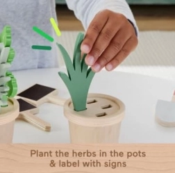 A gyerekek a virágládákban nevelhetik a fűszernövényeket, megjelölhetik azokat a mellékelt táblák segítségével (kréta nem tartozik a csomaghoz), és permetezőt használhatnak a kert gondozásához.
