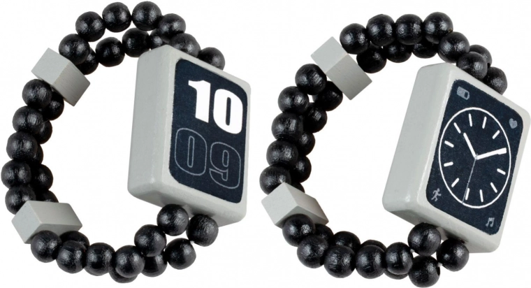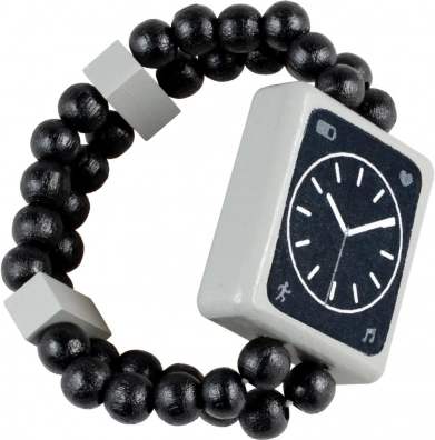 A gumira fűzött gyöngyök könnyen alkalmazkodnak a gyerek csuklójához, az órát önállóan is fel tudják venni.