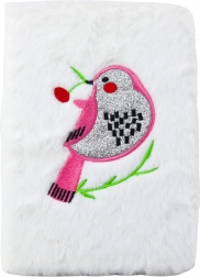 Egyedülálló jegyzetfüzet puha, szőrös borítóval, ideális kiegészítő azok számára, akik értékelik az egyedi és kellemes kiegészítőket. A fehér borítót bájos, rózsaszín és ezüstszínű madárhímzés díszíti, ami egyedi varázst és eleganciát kölcsönöz a jegyzetfüzetnek.
