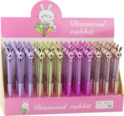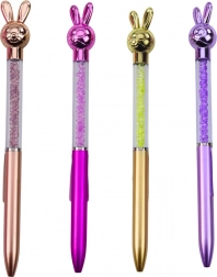 Az apró kövecskékkel töltött, átlátszó testnek köszönhetően a toll írás közben elragadó, csillogó hatást kelt. A végén lévő mutatós nyuszifigura kiemeli az egyedi megjelenést, amely bármelyik íróasztalon jól mutat.