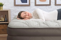 Praktikus, két személyes felfújható matrac, amely tágas fekvőfelületet kínál 203 × 152 × 51 cm méretben, kényelmes, steppelt felülettel és beépített elektromos pumpával, amellyel körülbelül 5 perc alatt felfújható. Az ellenálló PVC és poliészter anyag, a könnyen levehető huzat és a maximális 350 kg teherbírás miatt ideális otthoni vendégeknek és kempingezéshez is. A csomag része egy praktikus hordtáska az egyszerű szállításhoz és tároláshoz.