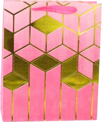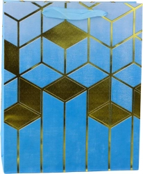 Ez az elegáns ajándéktáska a modern dizájnt ötvözi a praktikummal. Feltűnő arany geometrikus motívumok és telt színek díszítik, melyek reprezentatív csomagolássá teszik bármely ajándékhoz. A masszív díszkarton és az erős zsinór fülek kényelmes és biztonságos hordást biztosítanak.