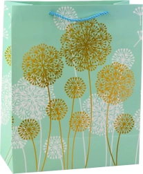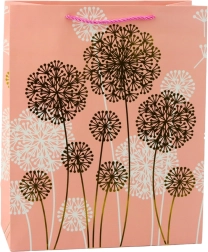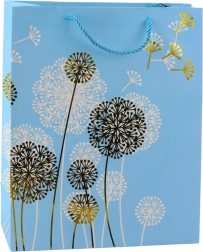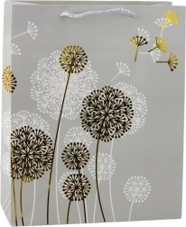 Ez a stílusos papírtáska finom, természet ihlette pitypang mintával és arany, illetve fehér akcentusokkal luxus megjelenést kölcsönöz ajándékának. Születésnapra, évfordulóra, esküvőre és családi ünnepekre egyaránt illik, és remekül illeszkedik a modern dekortrendekhez.
