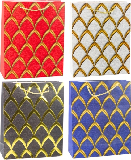 Ez a stílusos ajándéktáska minden ajándéknak különleges hangulatot kölcsönöz. Villámgyorsan becsomagolhatja az ajándékot, és a masszív kialakításnak és strapabíró anyagnak köszönhetően biztonságban eljuttathatja a megajándékozotthoz. A glamour stílusú arany díszítés felkelti a figyelmet és magasabb szintre emeli az ajándék prezentációját.