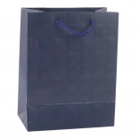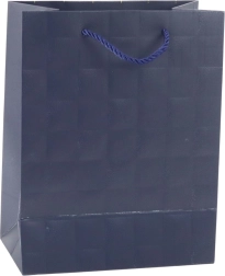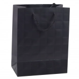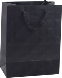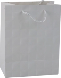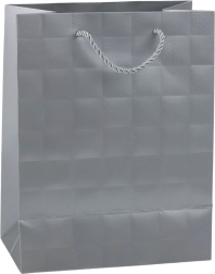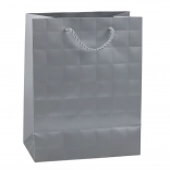 Ez a stílusos díszzacskó letisztult megjelenésével és a dombornyomott négyzetek diszkrét textúrájával egyszerre modern és luxus hatású. A masszív dekoratív kartonnak és a minőségi zsinórfüleknek köszönhetően tartós, így nehezebb ajándékokhoz is megfelelő.