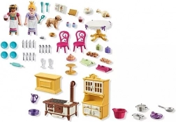 Mélyedj el a kreatív játék világában a Playmobil Princess Magic királyi konyhájával. Két hercegnő, akik aranyos kötényekbe vannak öltözve, finomságokat készítenek és díszes tálcákon tálalják. A készlet számos részletet kínál, beleértve a szépen megtervezett bútorokat és a valósághű konyhai eszközöket, melyek életre keltik a királyi főzés varázsát.