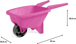 A könnyű és tartós rózsaszín gyerek talicska ideális a kertbe, a homokozóba és a strandra. Kompakt, 53 cm-es méret, formázott markolatok az egyszerű irányításhoz, valamint biztonságos, strapabíró műanyagból készült, amely különféle időjárási körülményekhez is megfelelő.